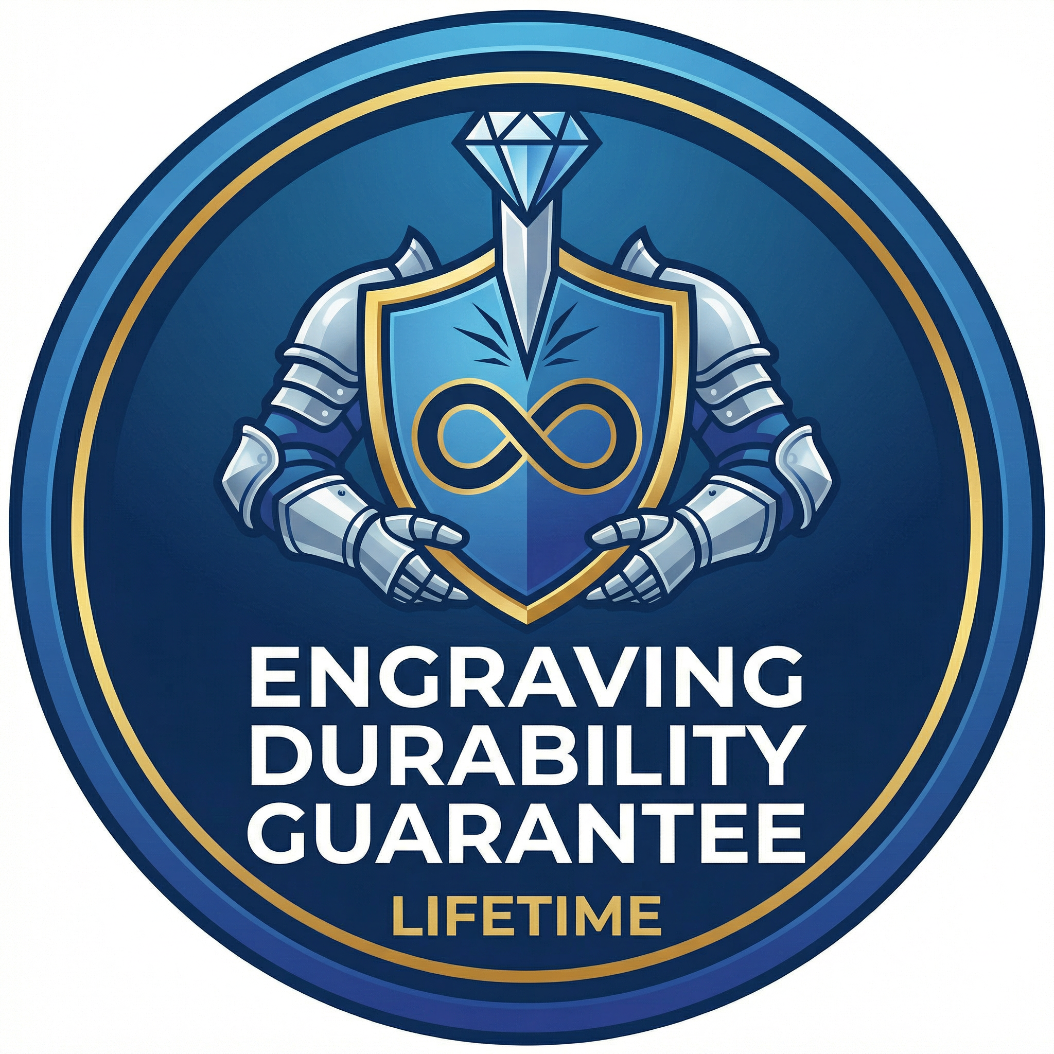 Wir stehen zu unserer Handwerkskunst. Unsere Lasergravuren sind dauerhaft und beständig. Sollte Ihre Gravur dennoch jemals verblassen, abgehen oder unleserlich werden, schicken wir Dir umgehend und kostenfrei ein neues Produkt zu. Ihre Zufriedenheit ist unsere Priorität.