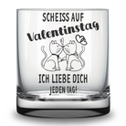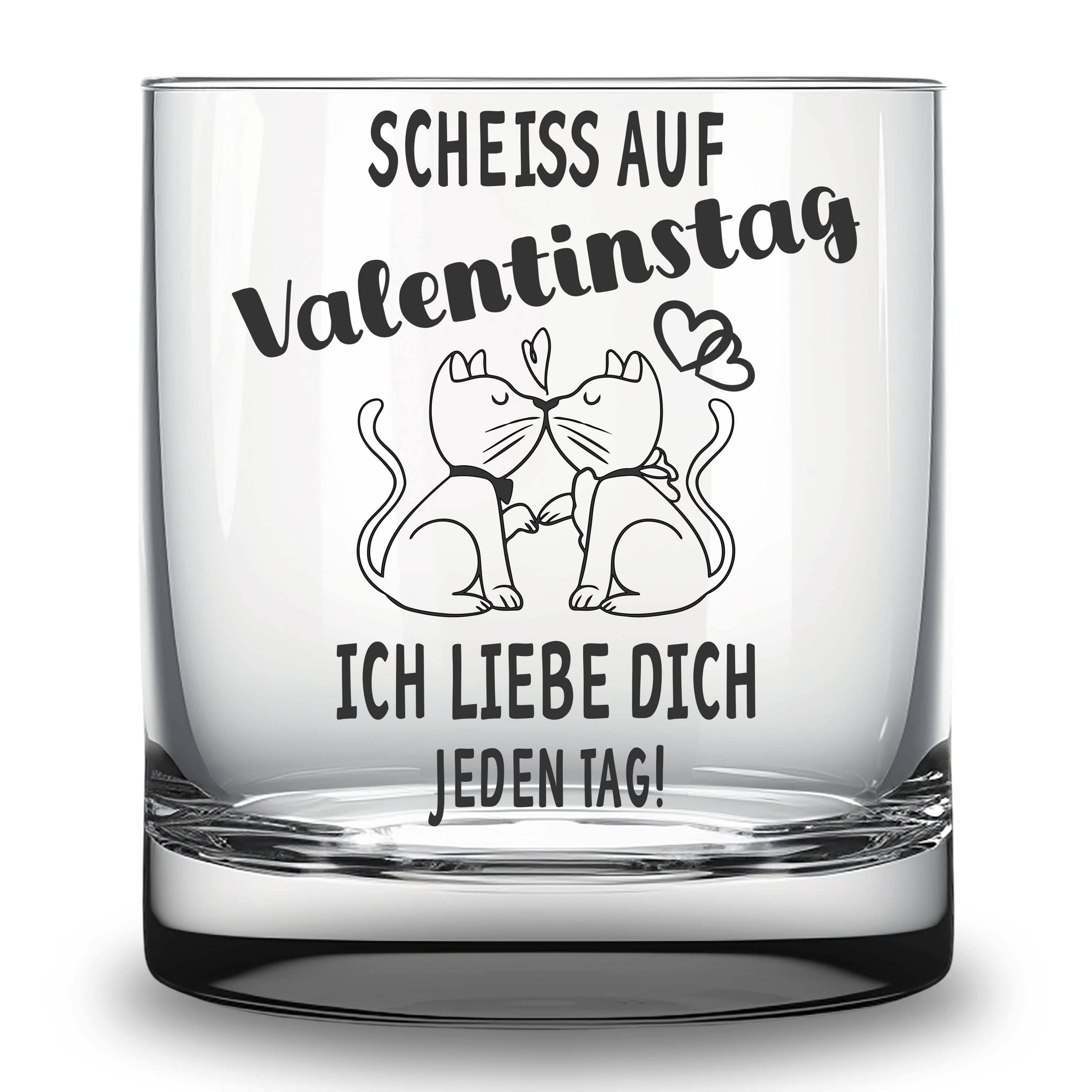 🥃 Romantisches Trinkglas mit Gravur "Scheiss auf Valentinstag - ich liebe dich jeden Tag" und einem niedlichen Katzenmotiv. Eine tolle Geschenkidee für den Partner, die Partnerin, die Freundin oder den Freund, ideal als Liebesgeschenk.