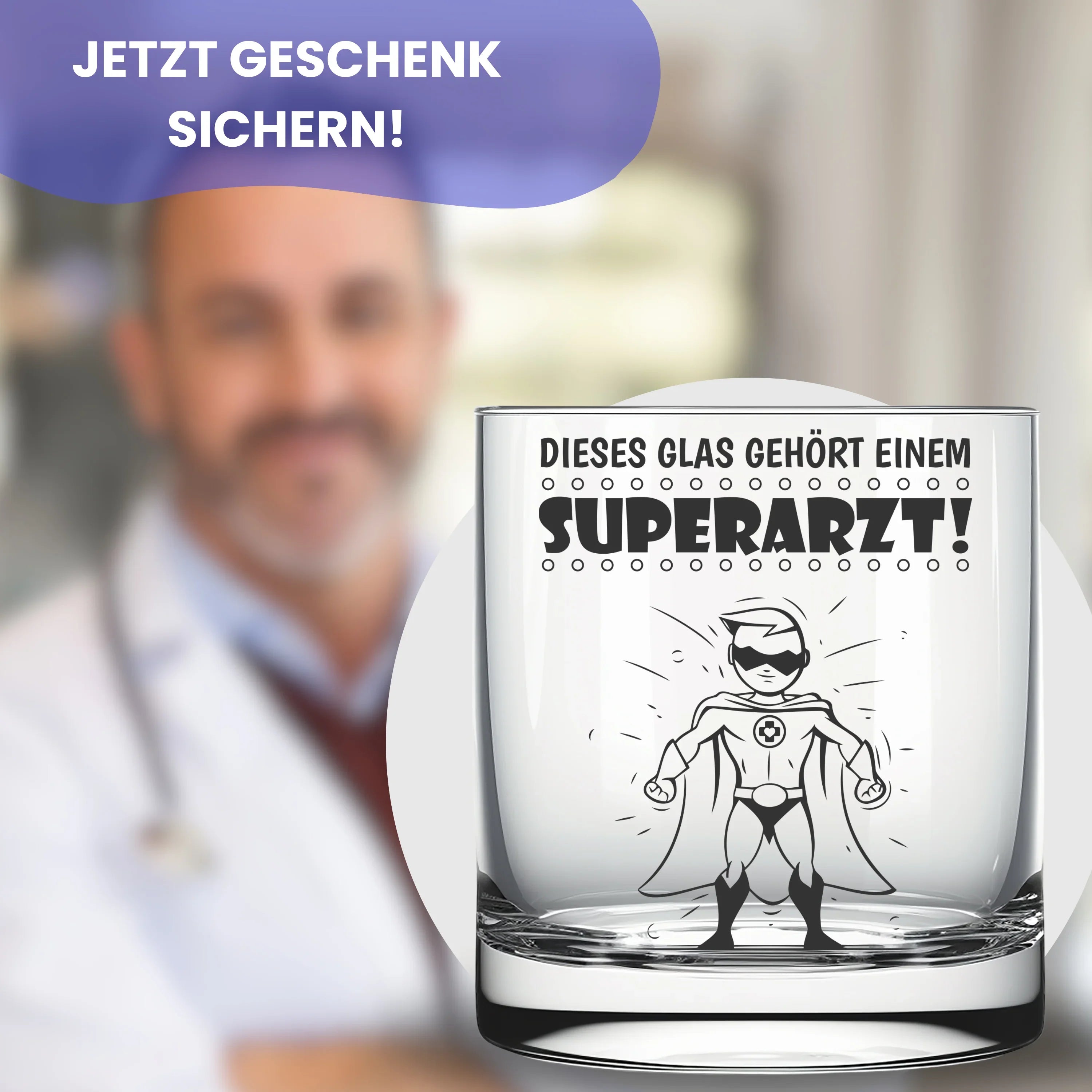 🥃 Ein Glas sagt mehr als tausend Worte! Witziges Trinkglas mit Gravur "Dieses Glas gehört einem Superarzt" und einem Superheldenmotiv. Eine tolle Geschenkidee und kleine Aufmerksamkeit für alle Ärzte die sich selbst nicht zu ernst nehmen. Bringen Sie mit diesem Glas ein bisschen Heiterkeit in Ihren Alltag.
