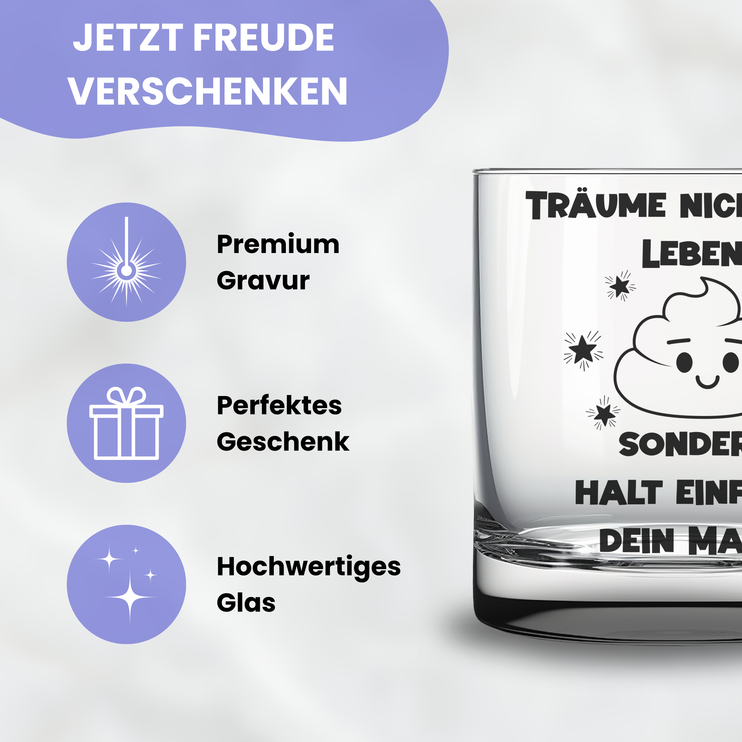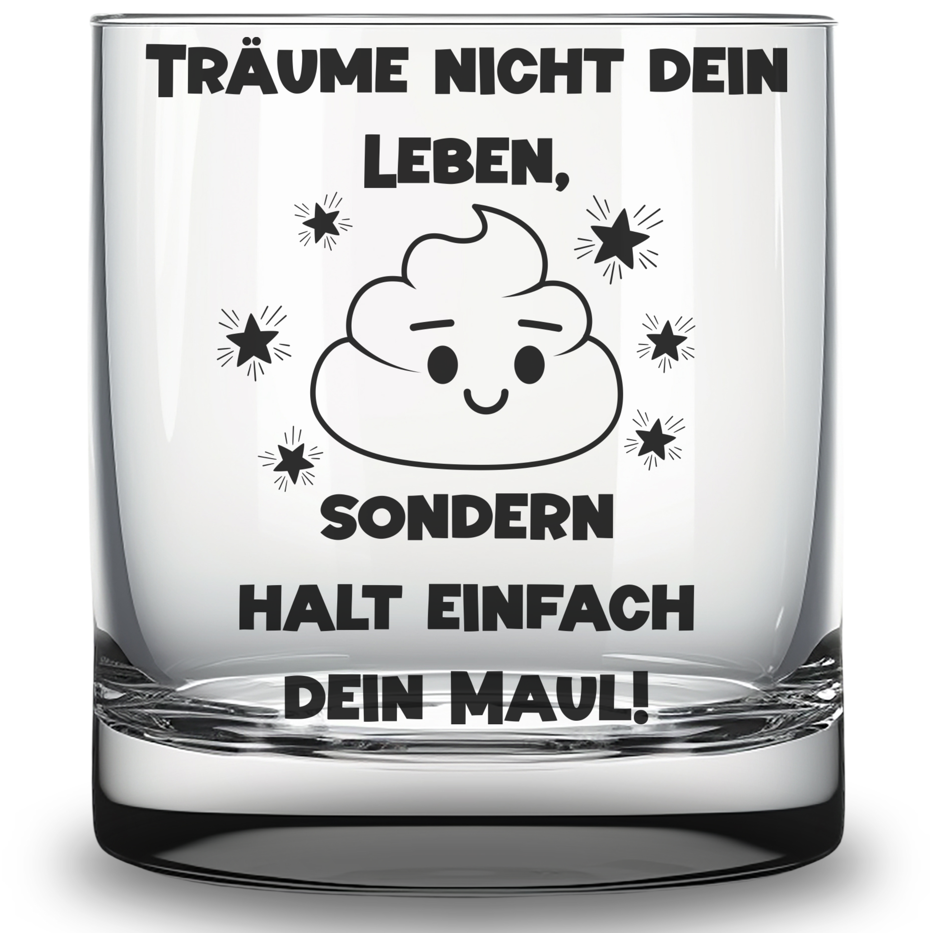 đ„ Witziges Trinkglas mit Gravur "TrĂ€ume nicht dein Leben, sondern halt einfach dein Maul" und einem Kackhaufen-Motiv. Eine witzige Geschenkidee fĂŒr Kollegen, Freunde, Kumpels, Arbeitskollegen ...