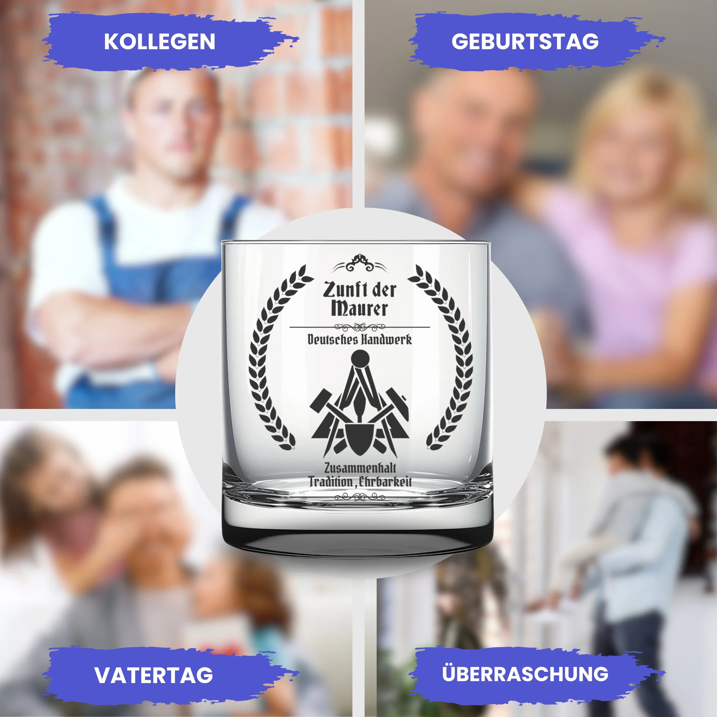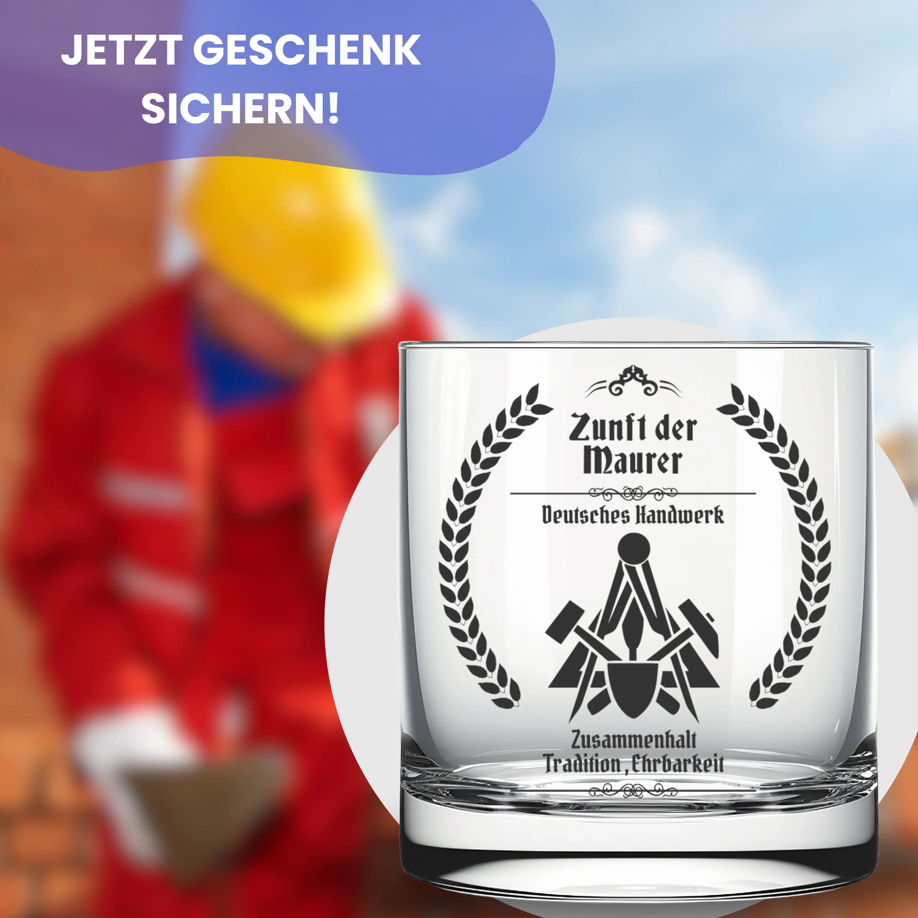 đŸ„ƒ Trinkglas mit Gravur Zunftzeichen der Maurer. Eine tolle Geschenkidee und kleine Aufmerksamkeit fĂŒr alle Maurer, bei der Arbeit, im Kollegen- und Freundeskreis.