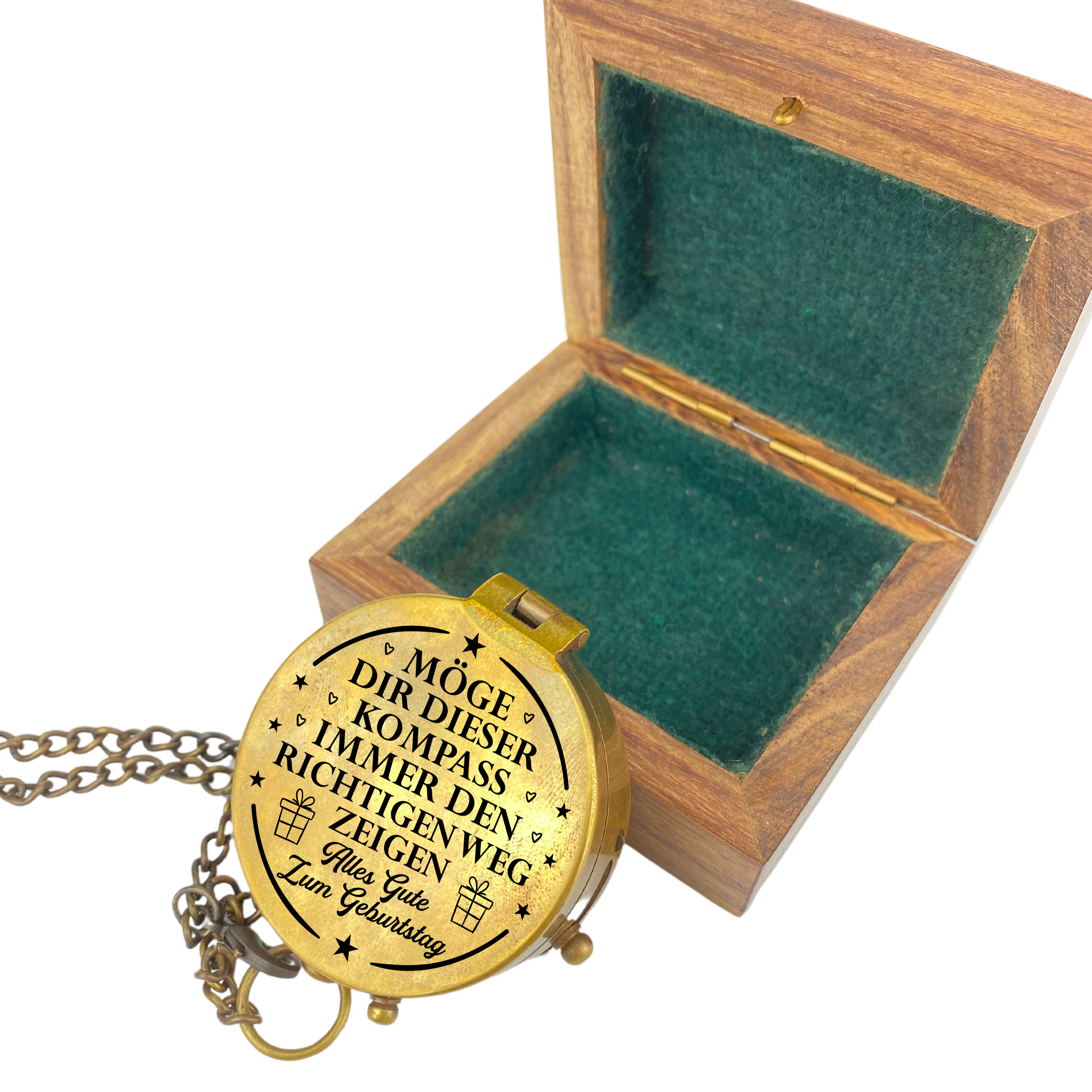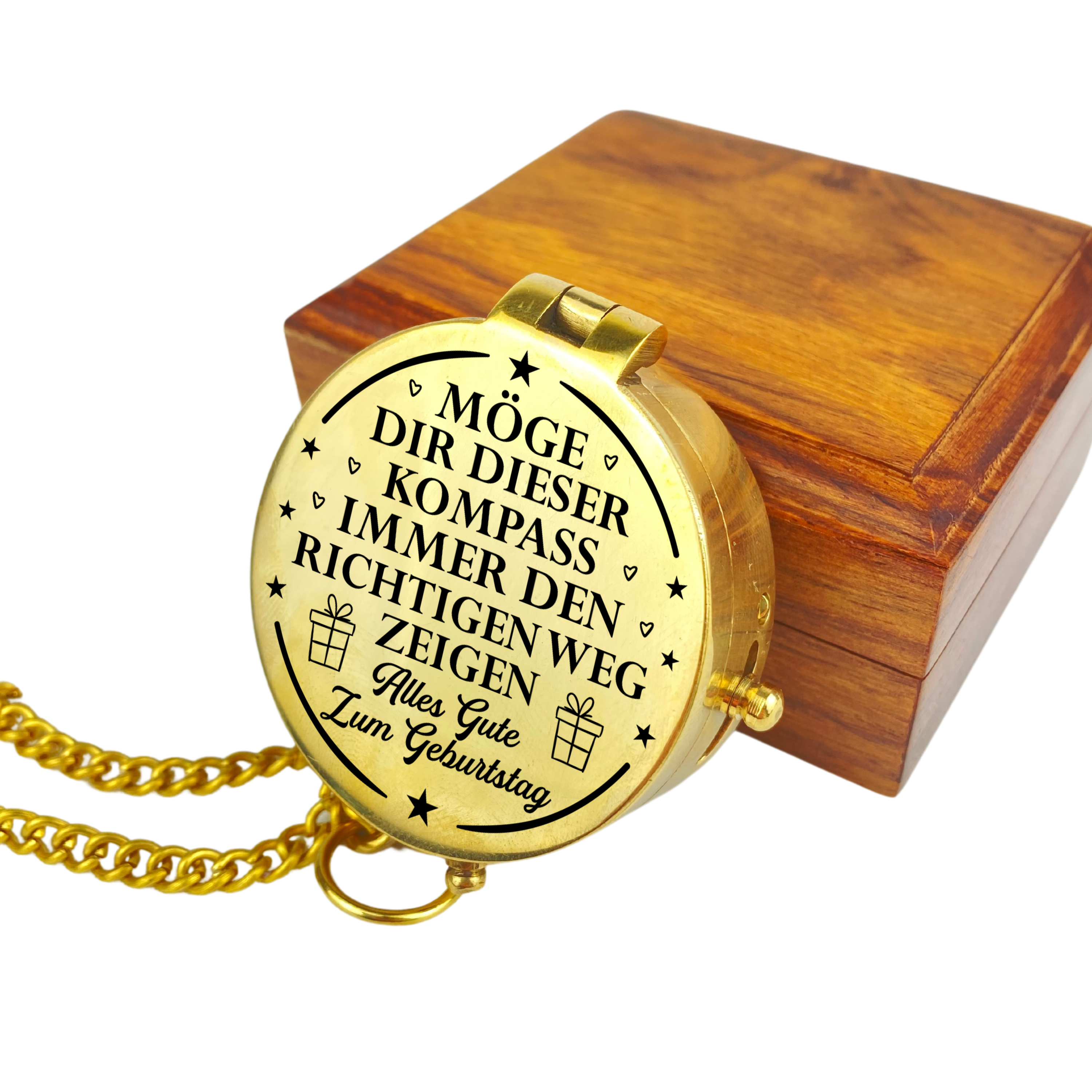 Dieser Kompass ist ein wunderschönes Geschenk, die Gravur ist toll geworden und so schnell angefertigt und verschickt. Vielen Dank dafür und jederzeit wieder, werde bald wieder Oma von einem Buben, der bekommt dann den gleichen Kompass.