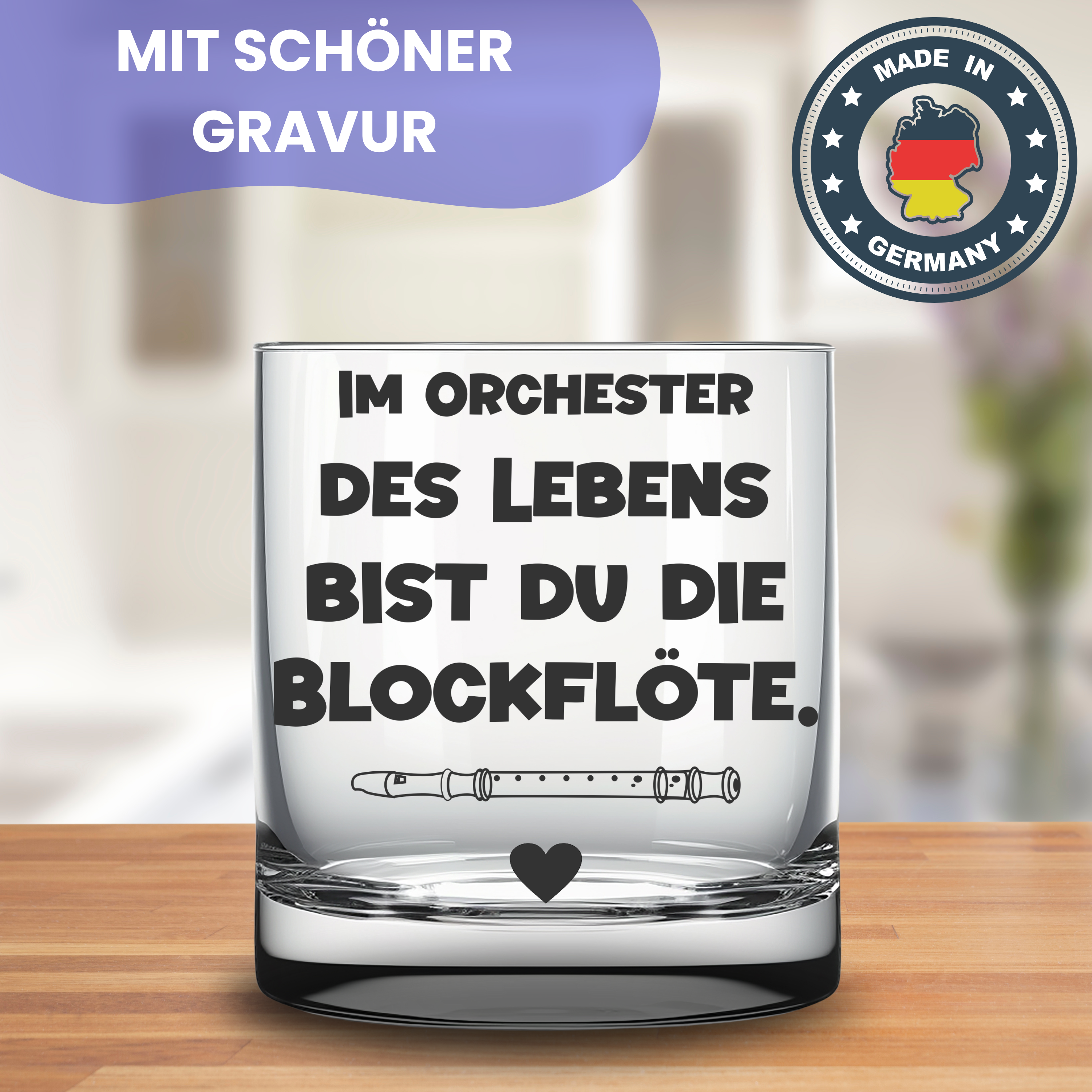 🥃 Ein Glas sagt mehr als tausend Worte! Witziges Trinkglas mit Gravur "Im Orchester des Lebens bist du die Blockflöte". Eine lustige Geschenkidee und kleine Aufmerksamkeit für die Kollegen im Büro und bei der Arbeit, die Freunde und Kumpels. Bringen Sie mit diesem Glas ein bisschen Heiterkeit in Ihren Alltag.