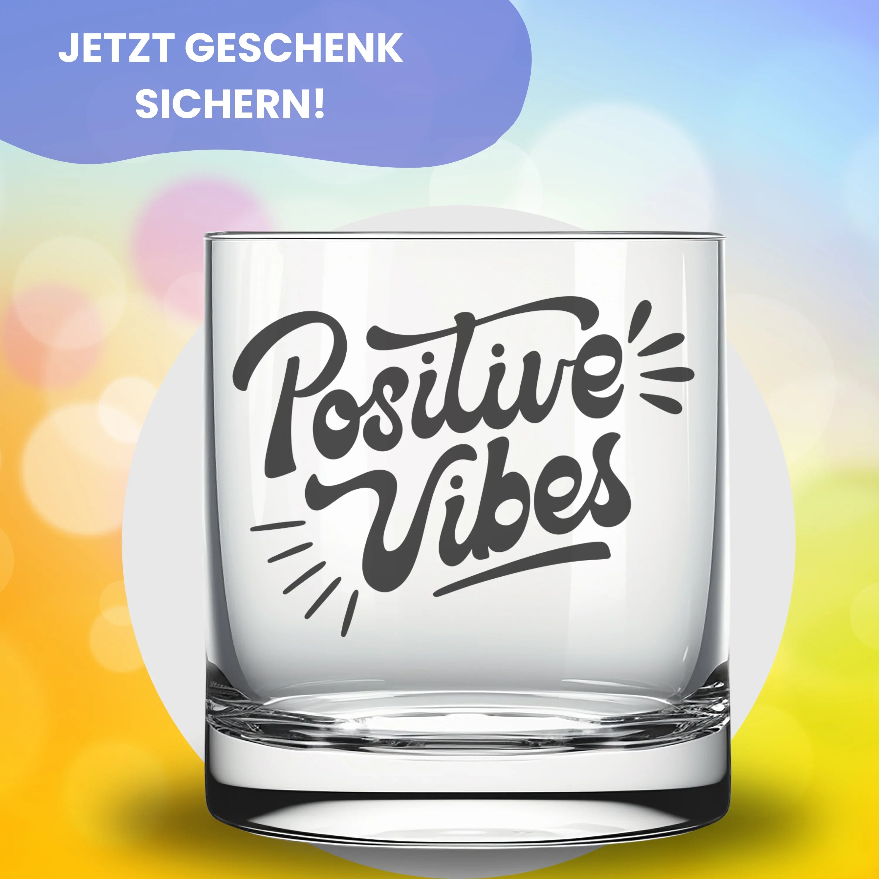 🥃 Frisch, fröhlich, positiv - das Trinkglas mit Gravur "Positive Vibes" für den Partner, die Freundin, den Freund, Freunde, den Kollegen oder den Chef. Ideal als Geschenk für das Büro.