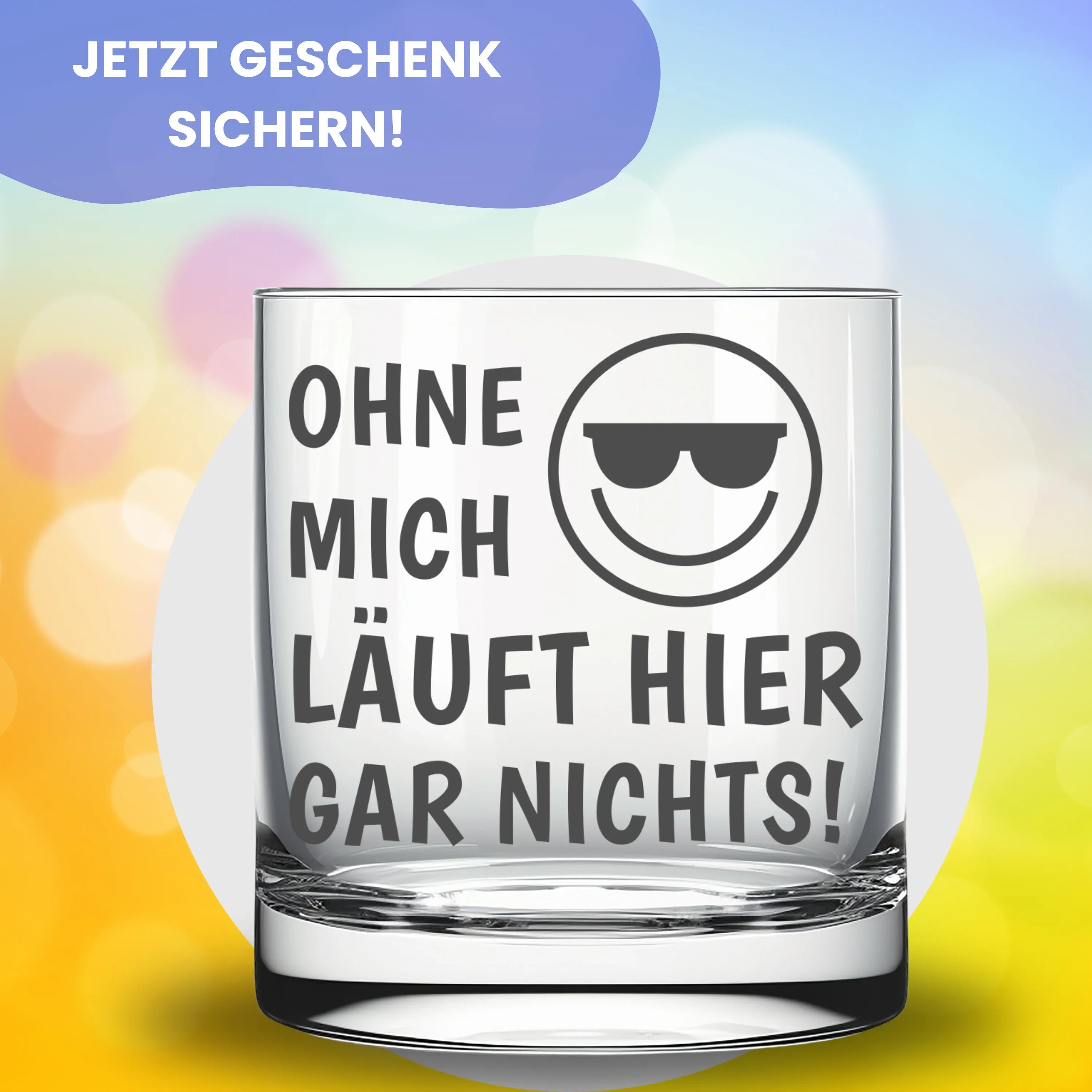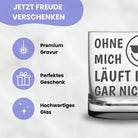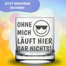 đŸ„ƒ Witziges Trinkglas mit Gravur "Ohne mich lĂ€uft hier gar nichts!" und einem Smiley-Motiv fĂŒr den Partner, die Freundin, den Freund, Freunde, den Kollegen oder den Chef. Ideal als Geschenk fĂŒr das BĂŒro.