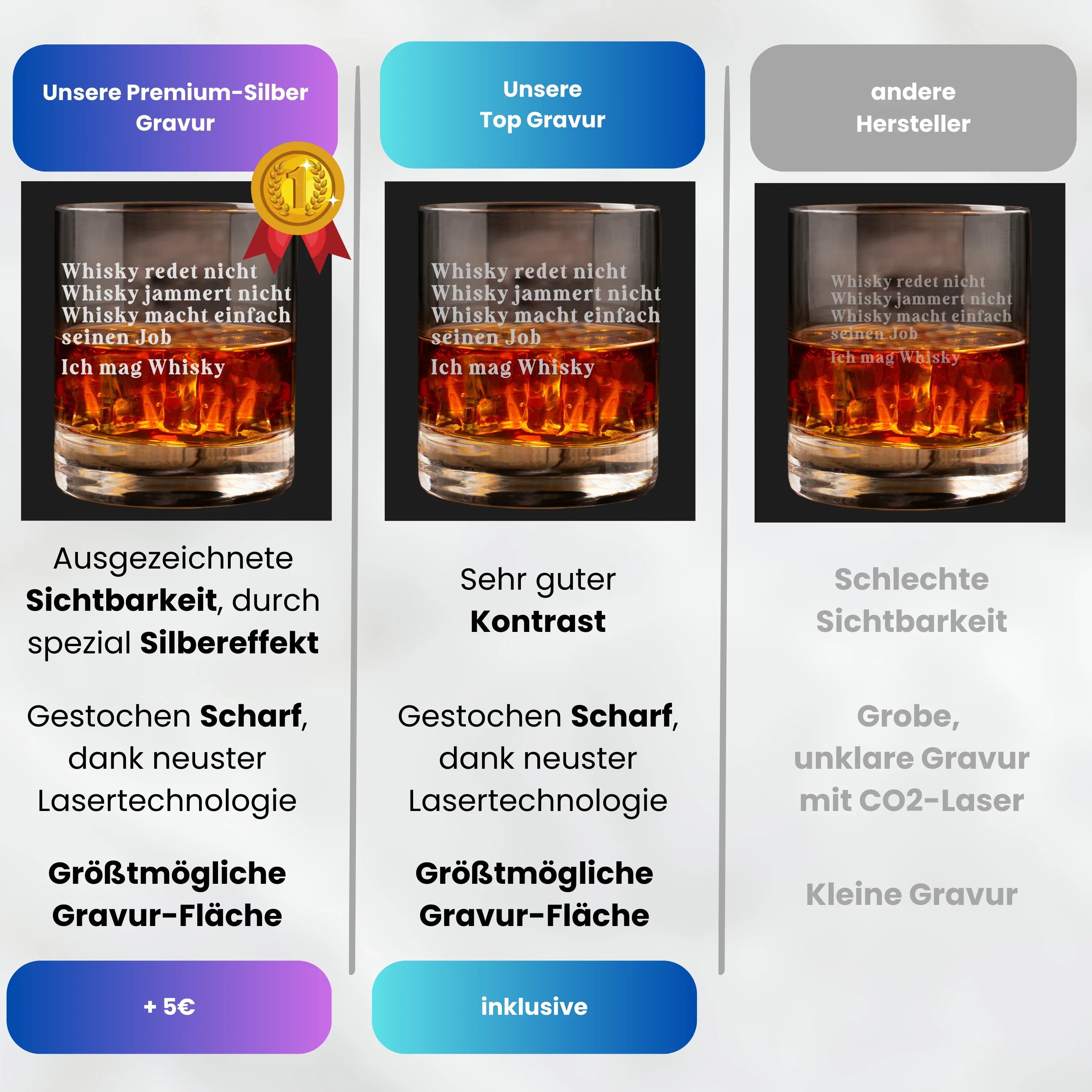 - ⥠Gravur von höchster QualitĂ€t: Unsere professionelle Gravurtechnik garantiert ein prĂ€zises und dauerhaftes Ergebnis. Der Text wird in das Glas graviert, um sicherzustellen, dass es auch nach vielen Jahren noch genauso beeindruckend aussieht. Die GlĂ€ser sind natĂŒrlich spĂŒlmaschinenfest und somit auch leicht zu reinigen.