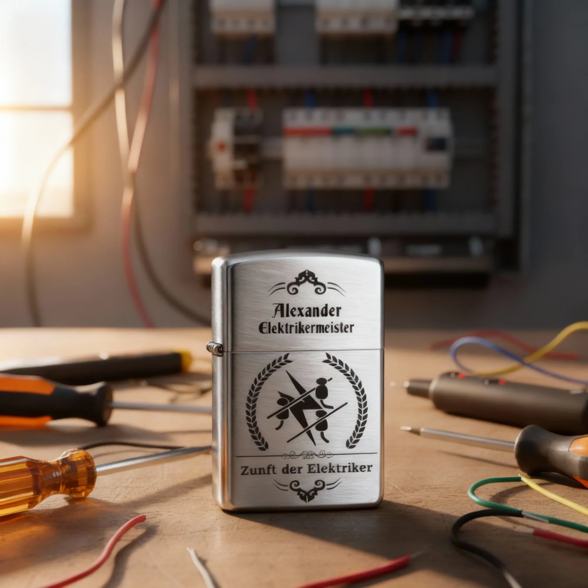 Zippo Benzinfeuerzeug Elektriker Zunftsymbol Gravur Personalisieren Dein Name Elektroniker Zunft personalisiert Zunftwappen graviert