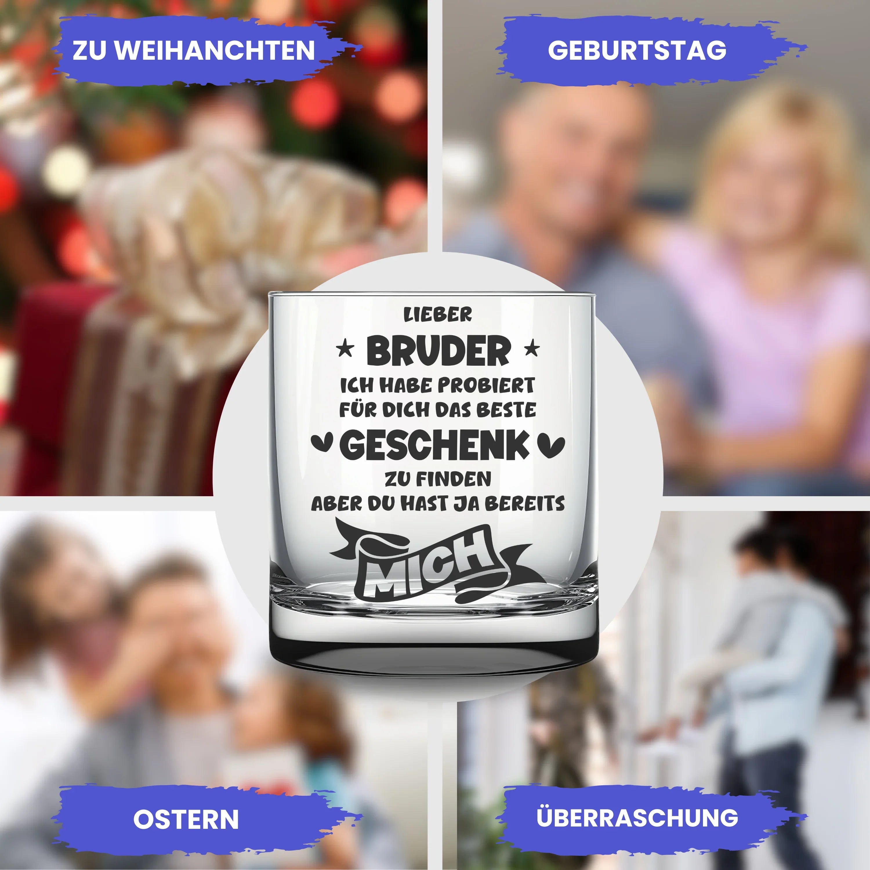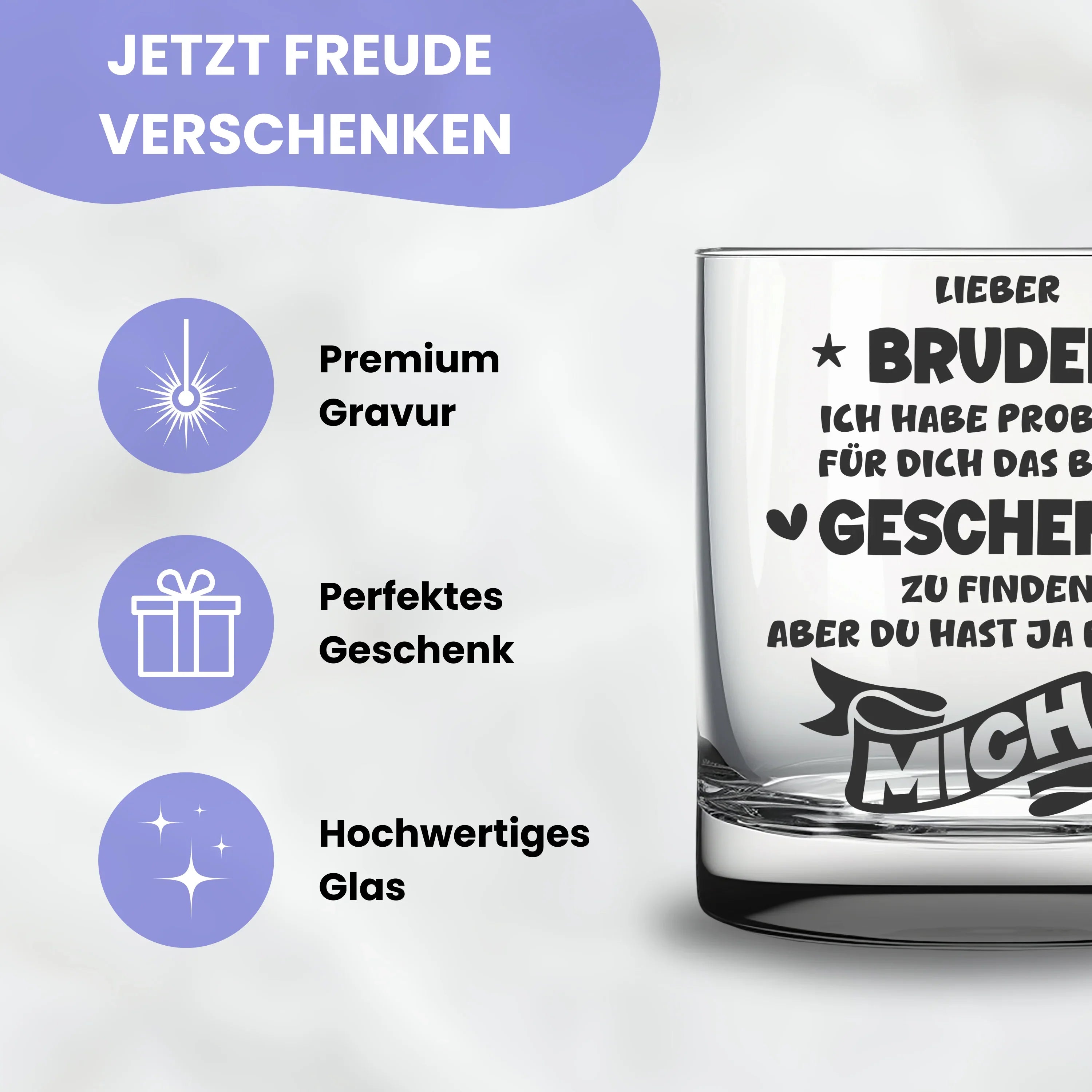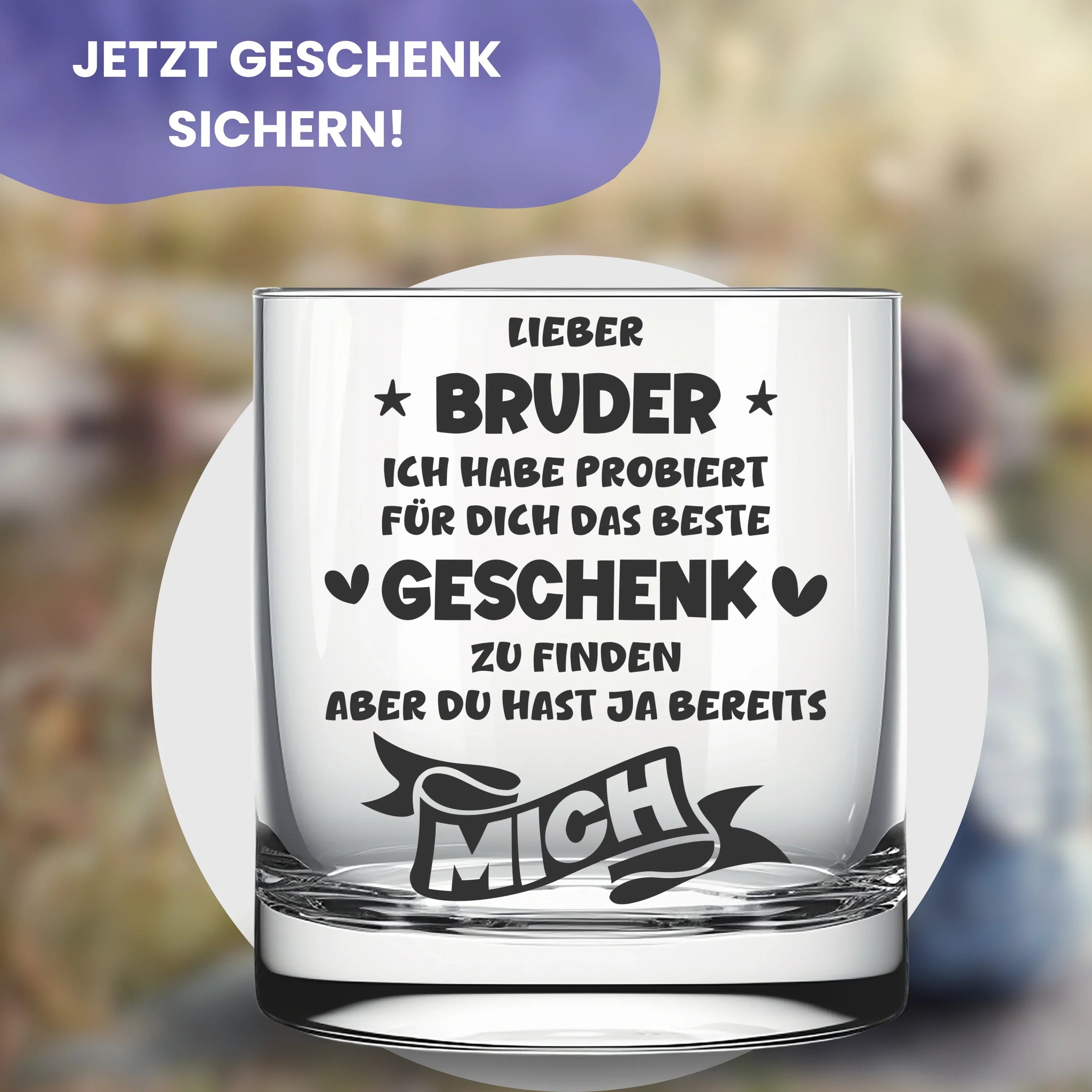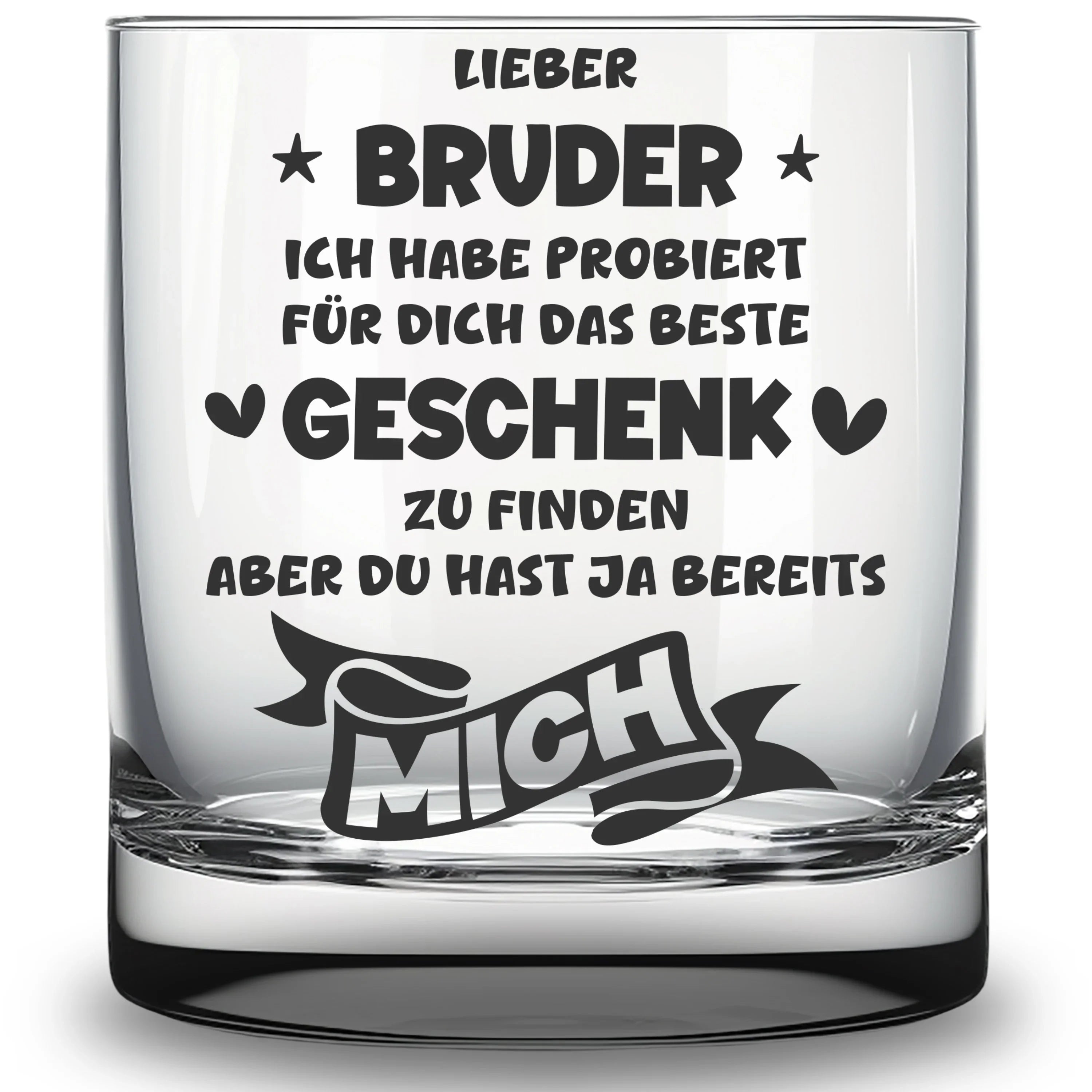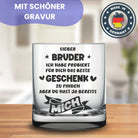 🥃 Schönes Trinkglas mit Gravur "Lieber Bruder, ich habe probiert für dich das beste Geschenk zu finden - aber du hast ja bereits mich". Eine tolle Geschenkidee für den Bruder zum Geburtstag, Namenstag, zu Weihnachten oder Ostern, oder einfach so als kleine Aufmerksamkeit und Überraschung zwischendurch.