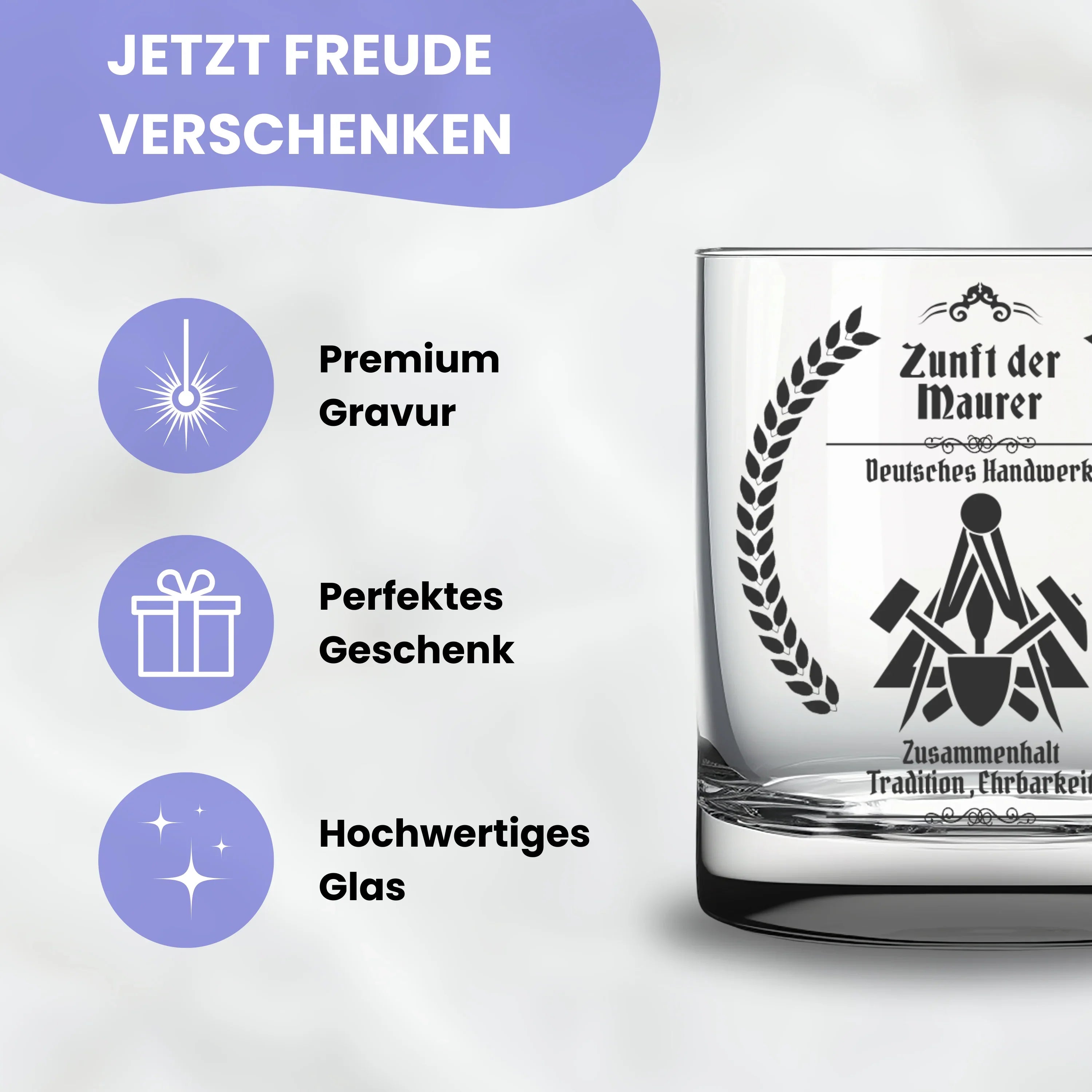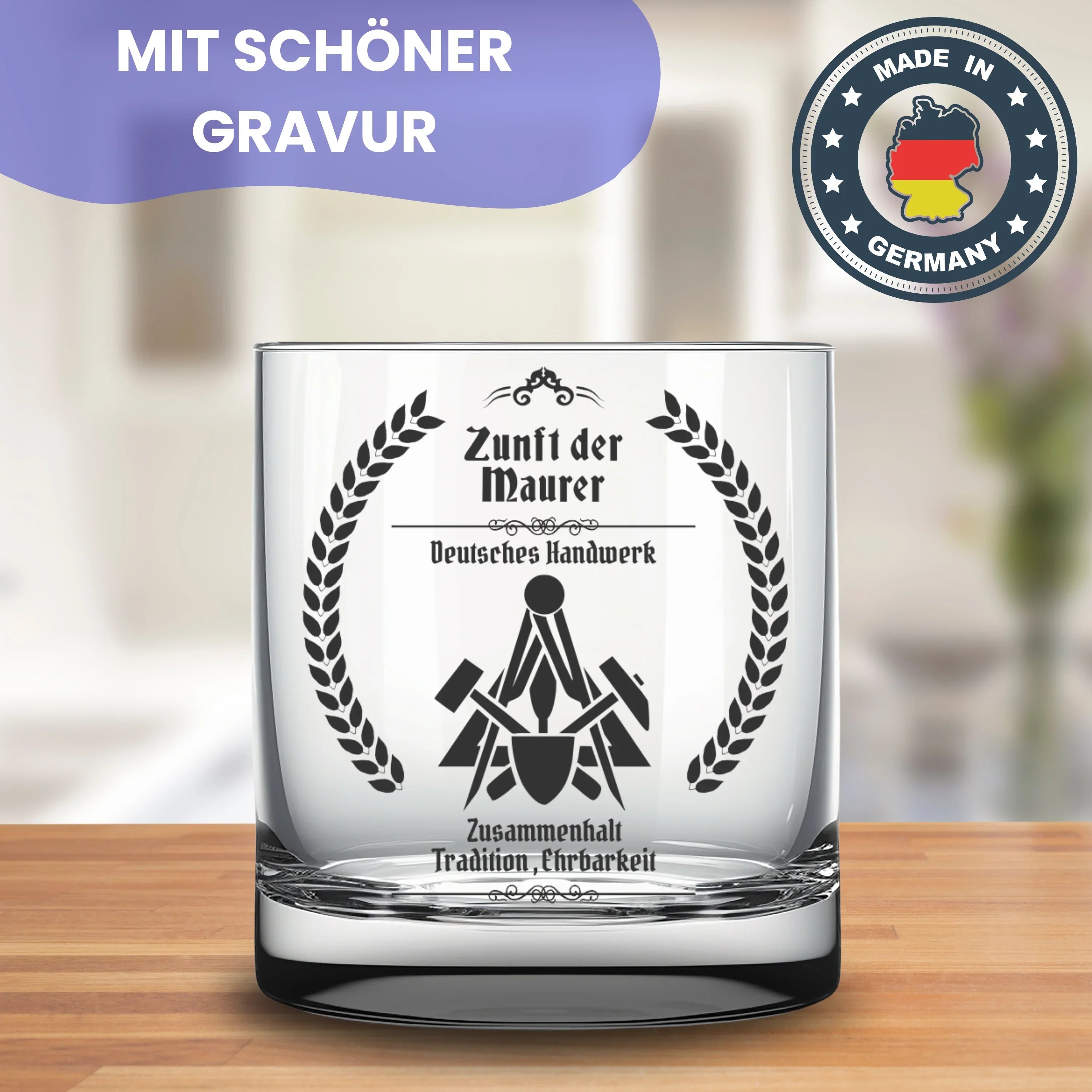 đ„ Trinkglas mit Gravur Zunftzeichen der Maurer. Eine tolle Geschenkidee und kleine Aufmerksamkeit fĂŒr alle Maurer, bei der Arbeit, im Kollegen- und Freundeskreis.