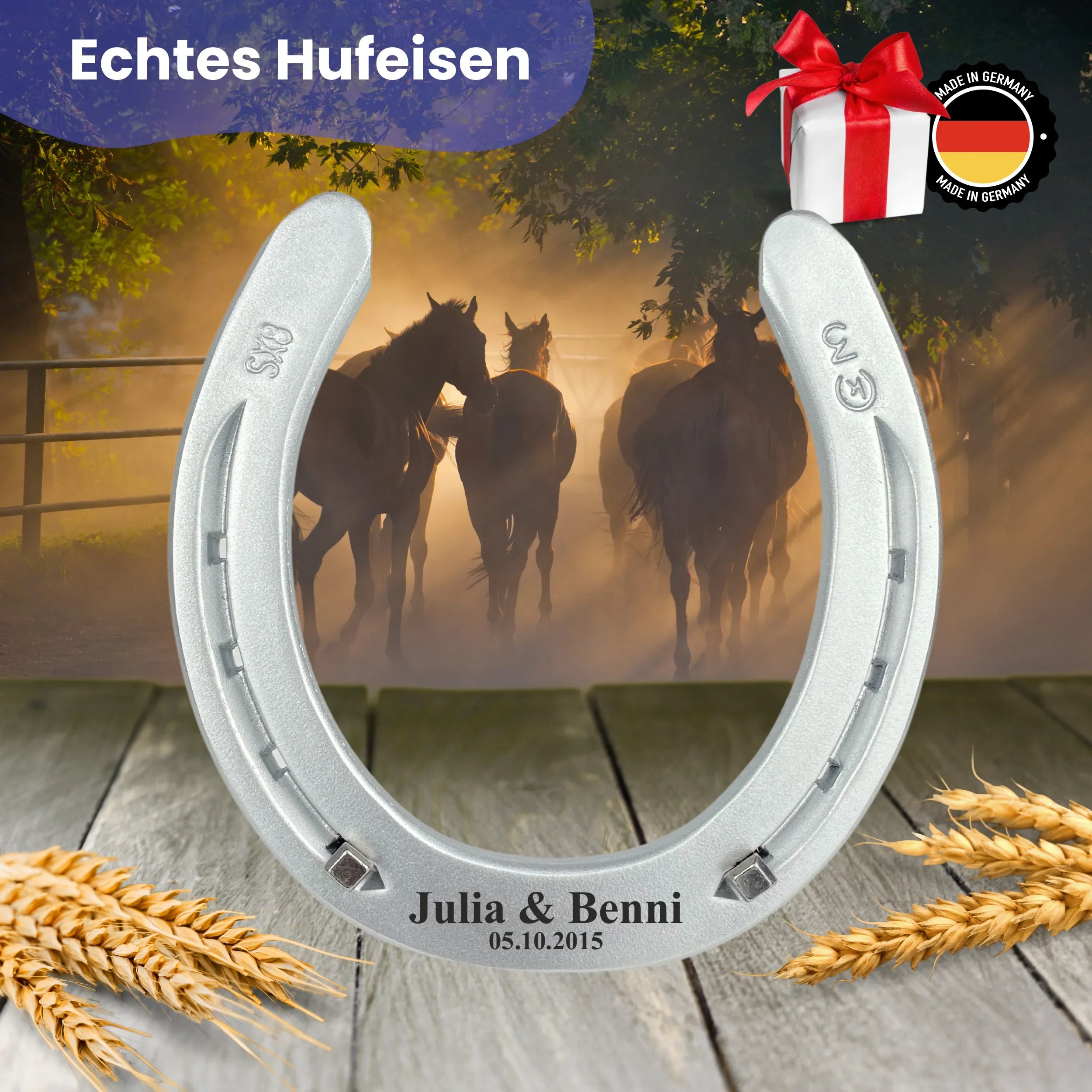 • 🐎 Hochwertiges Hufeisen aus schwerem Eisen: Ein massiver Glücksbringer, erhältlich in edlem Gold oder Silber – ideal für besondere Anlässe wie Geburt, Taufe, Jubiläum