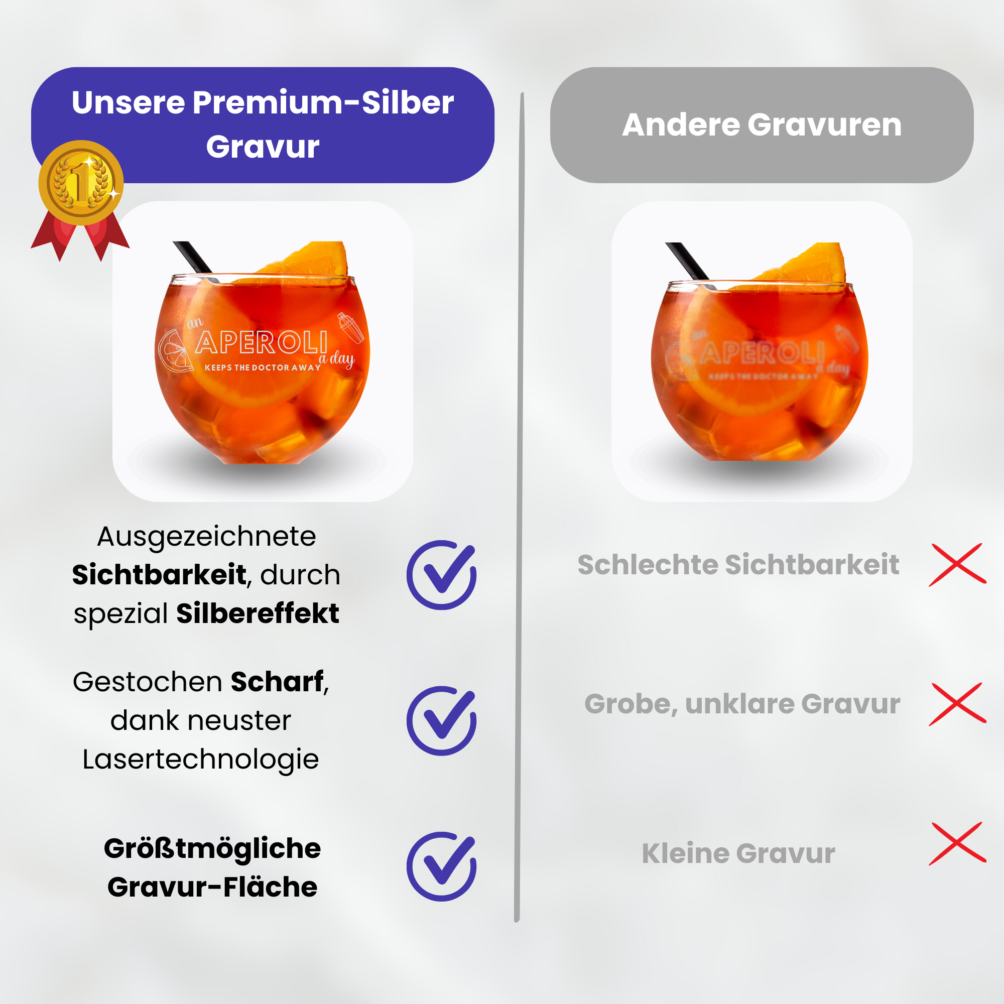 🍹 Tauchen Sie ein in die Welt des Genusses und der Eleganz mit unseren exklusiven Spritz-Gläsern. Cocktail-Glas mit hochwertiger Gravur eines Spruches. Zwei Varianten stehen zur Auswahl.