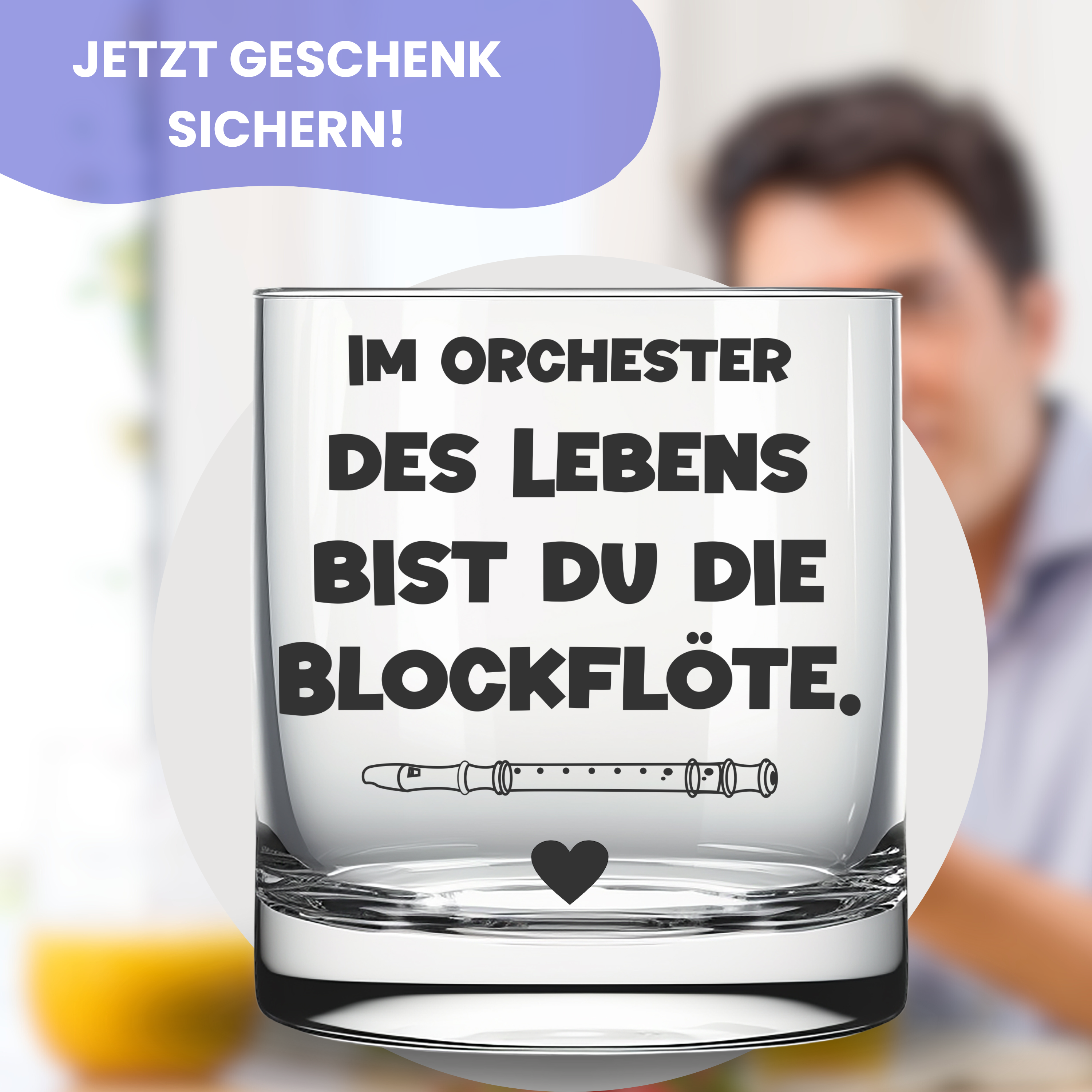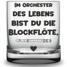 🥃 Ein Glas sagt mehr als tausend Worte! Witziges Trinkglas mit Gravur "Im Orchester des Lebens bist du die Blockflöte". Eine lustige Geschenkidee und kleine Aufmerksamkeit für die Kollegen im Büro und bei der Arbeit, die Freunde und Kumpels. Bringen Sie mit diesem Glas ein bisschen Heiterkeit in Ihren Alltag.