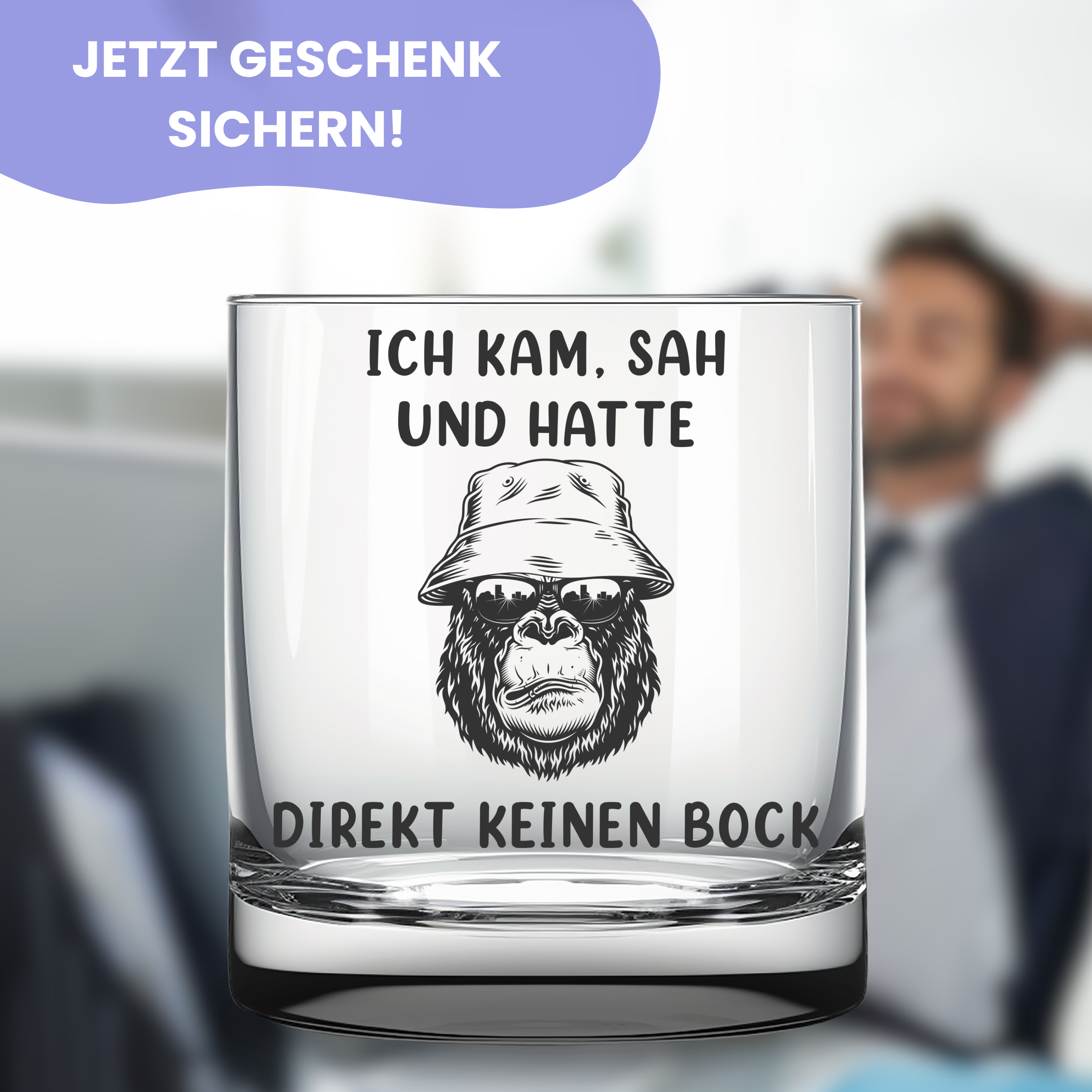 • 🥃 Witziges Trinkglas mit Gravur – Hochwertige Gravur "Ich kam, sah, und hatte direkt keinen Bock" für den Partner, die Freundin oder den Freund, den Kollegen oder den Chef. Ideal als Geschenk für das Büro