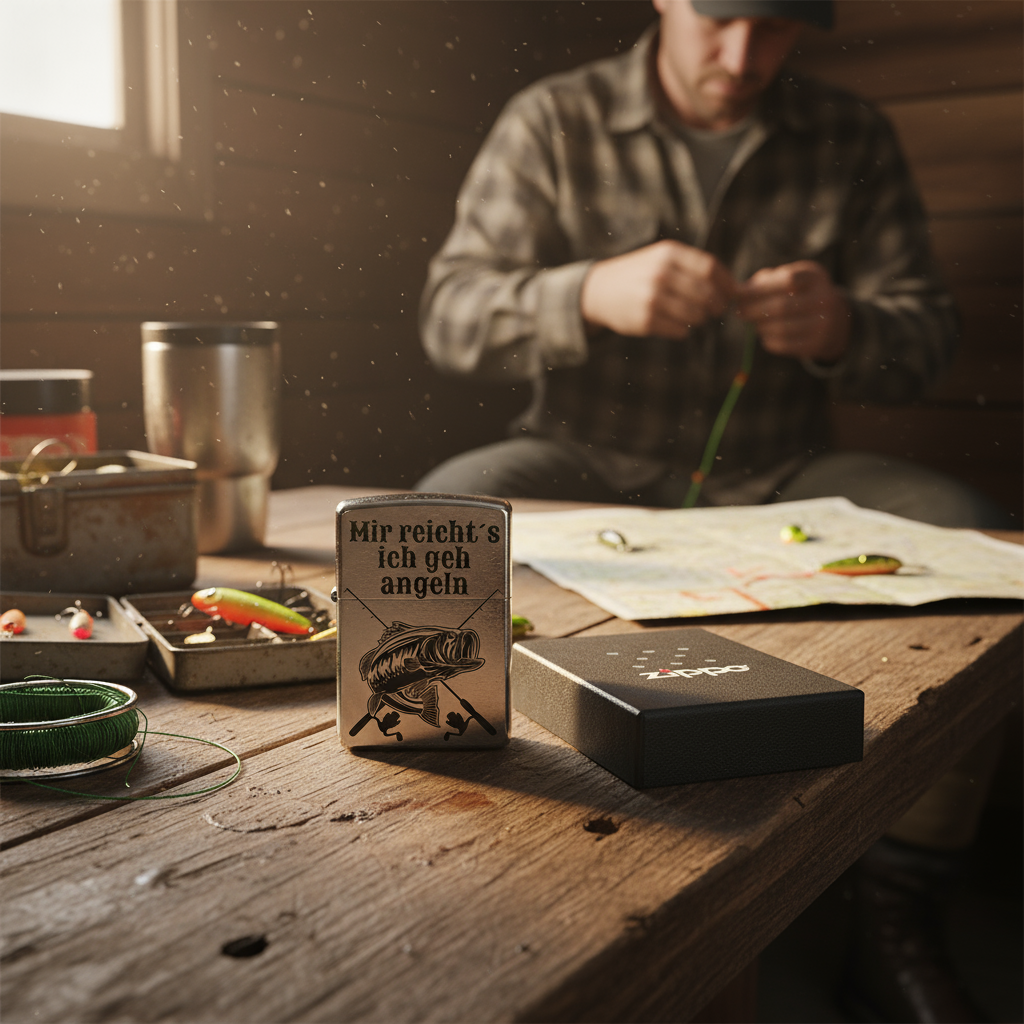 Durch das markante Angler-Design und die optionale Personalisierung eignet sich dieses Zippo ideal als hochwertiges Geschenk oder persönlicher Begleiter bei jedem Angelausflug.