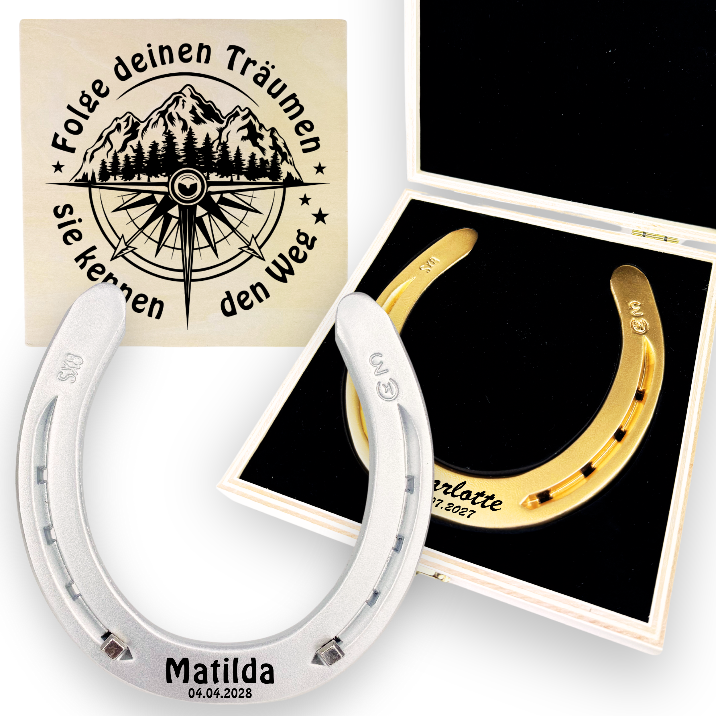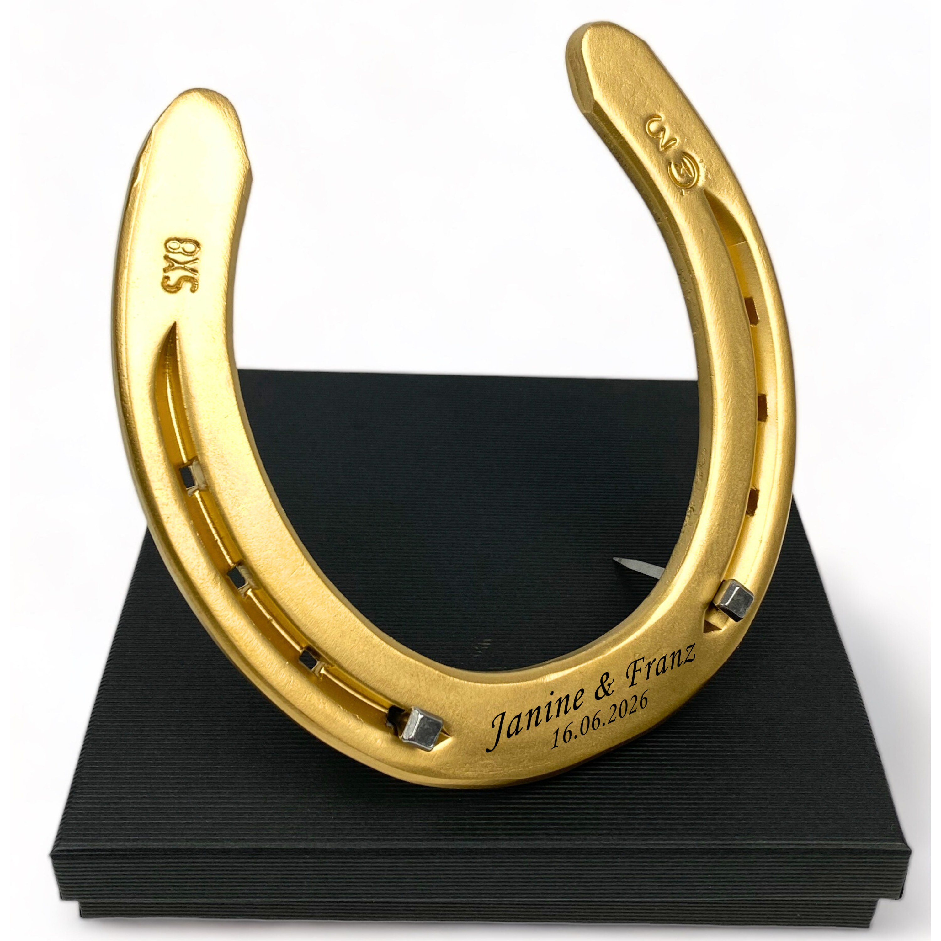 Ob zur Hochzeit, zum Einzug oder als liebevolle Aufmerksamkeit – unser graviertes Hufeisen ist mehr als nur ein Symbol. Es steht für Wertschätzung, Glück und bleibende Erinnerungen. Jetzt entdecken!