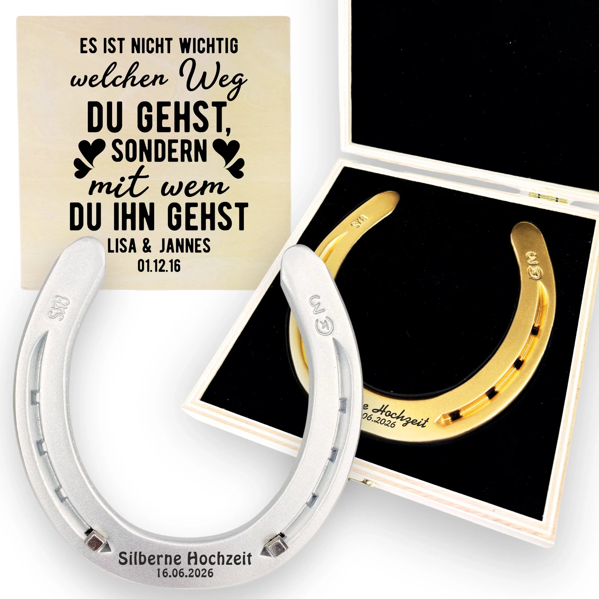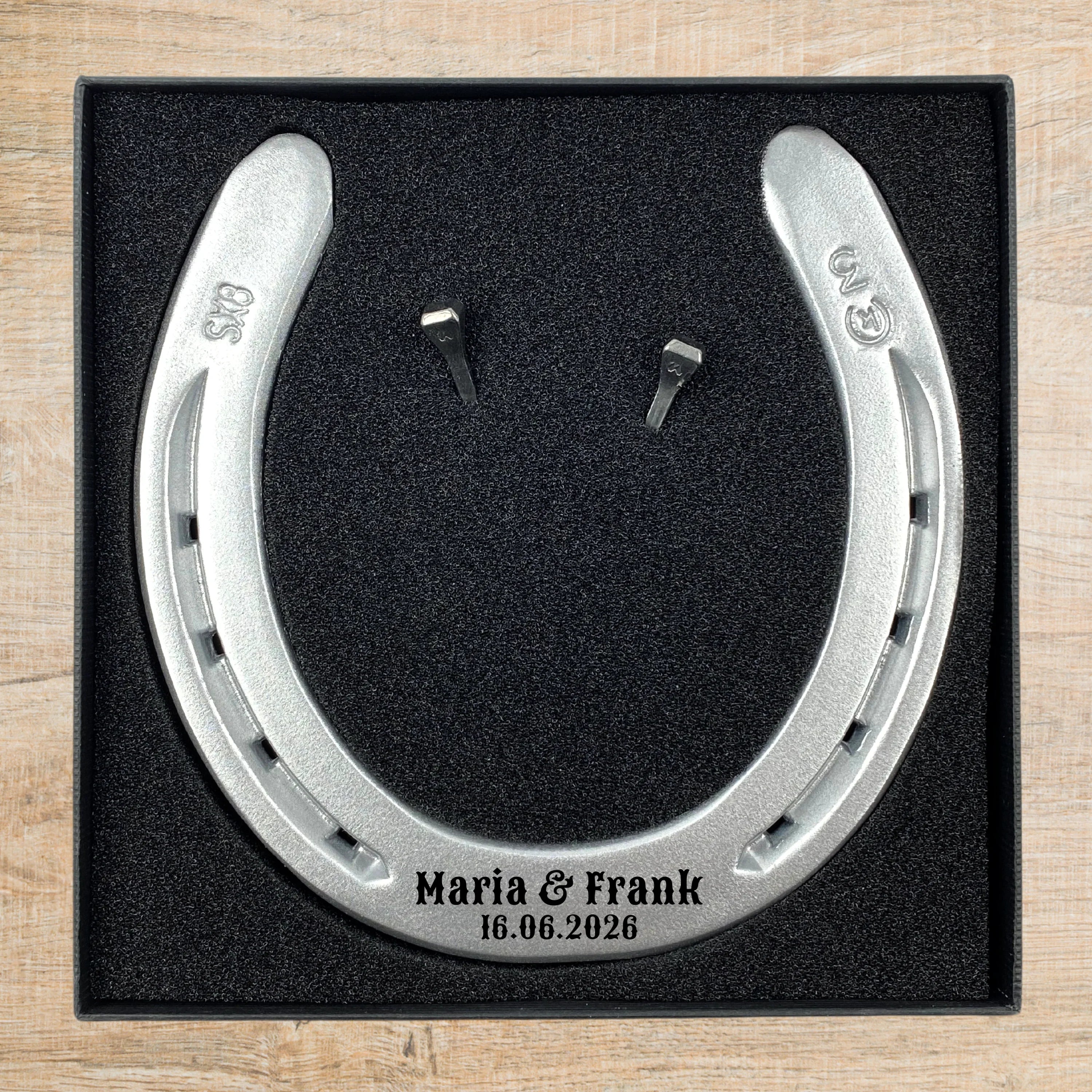 Ich habe das Hufeisen mit Holzbox zur Hochzeit meiner besten Freundin verschenkt und war total begeistert! Die Gravur auf der Box war wunderschön und sehr sauber gearbeitet – genau wie ich sie bestellt hatte. Das Hufeisen selbst wirkt massiv und hochwertig, genau wie beschrieben. Es kam super an, das Brautpaar war gerührt und hat sich riesig gefreut. Man merkt, dass hier mit Herz gearbeitet wird. Für alle, die etwas Symbolisches und Persönliches verschenken wollen, eine absolute Empfehlung!