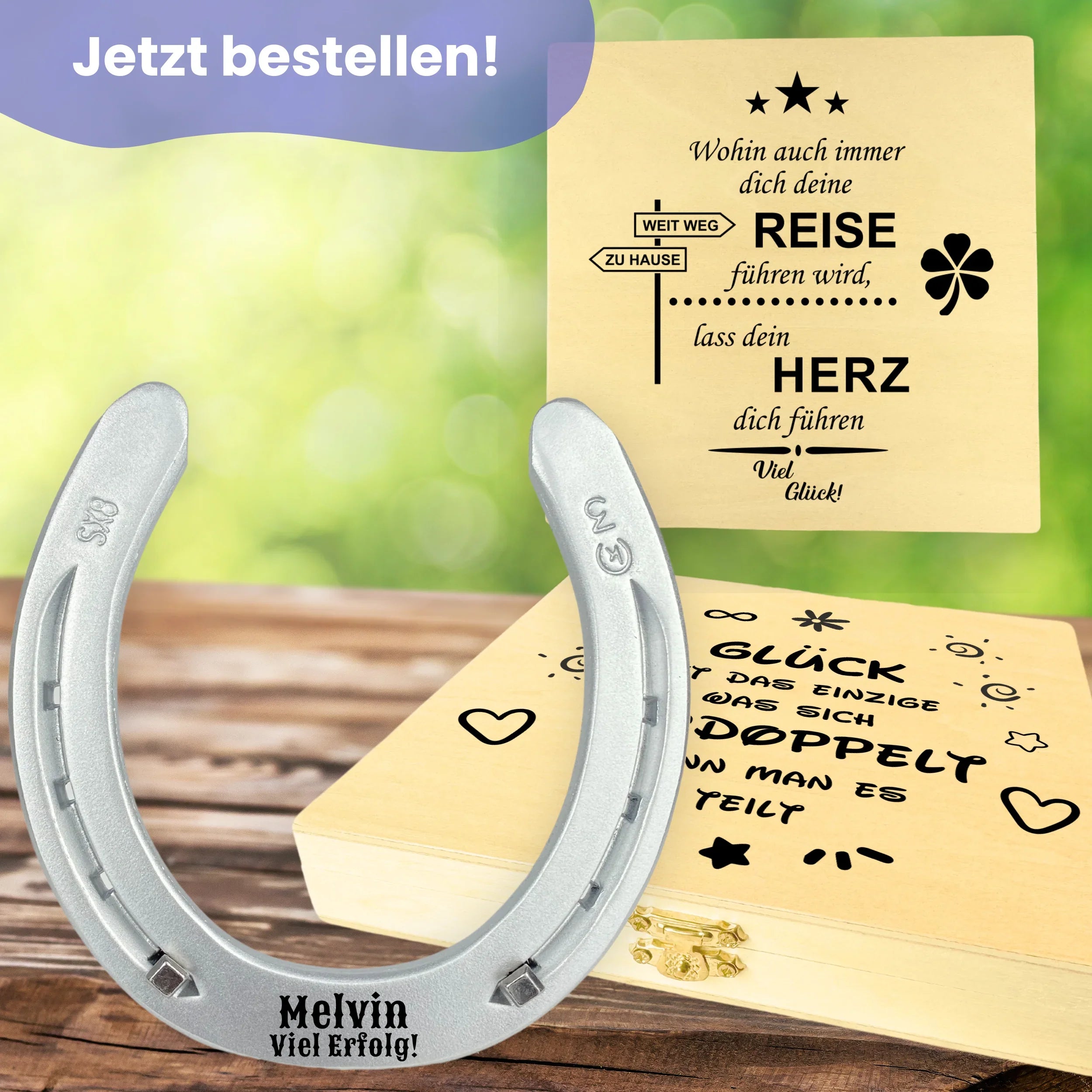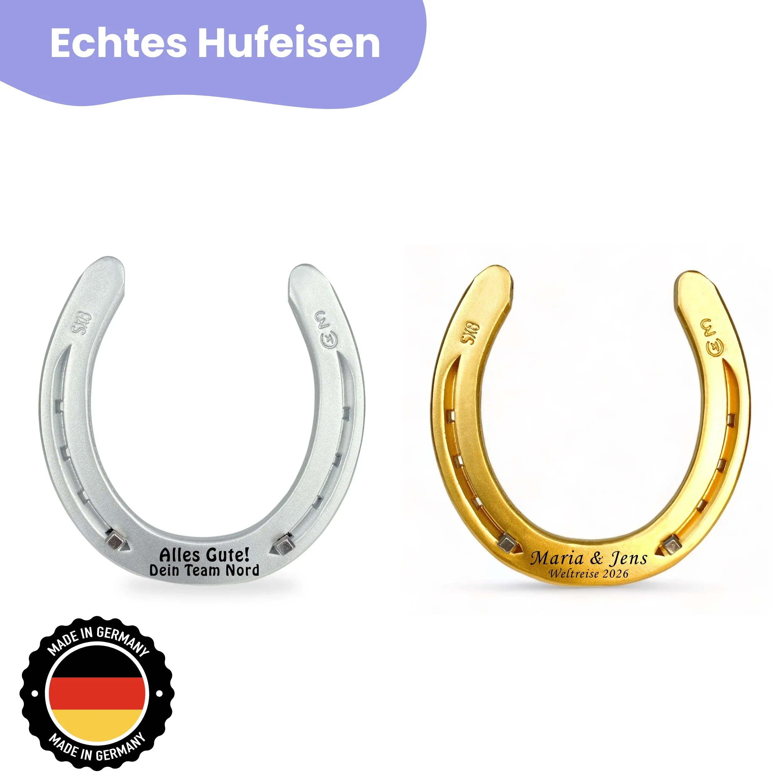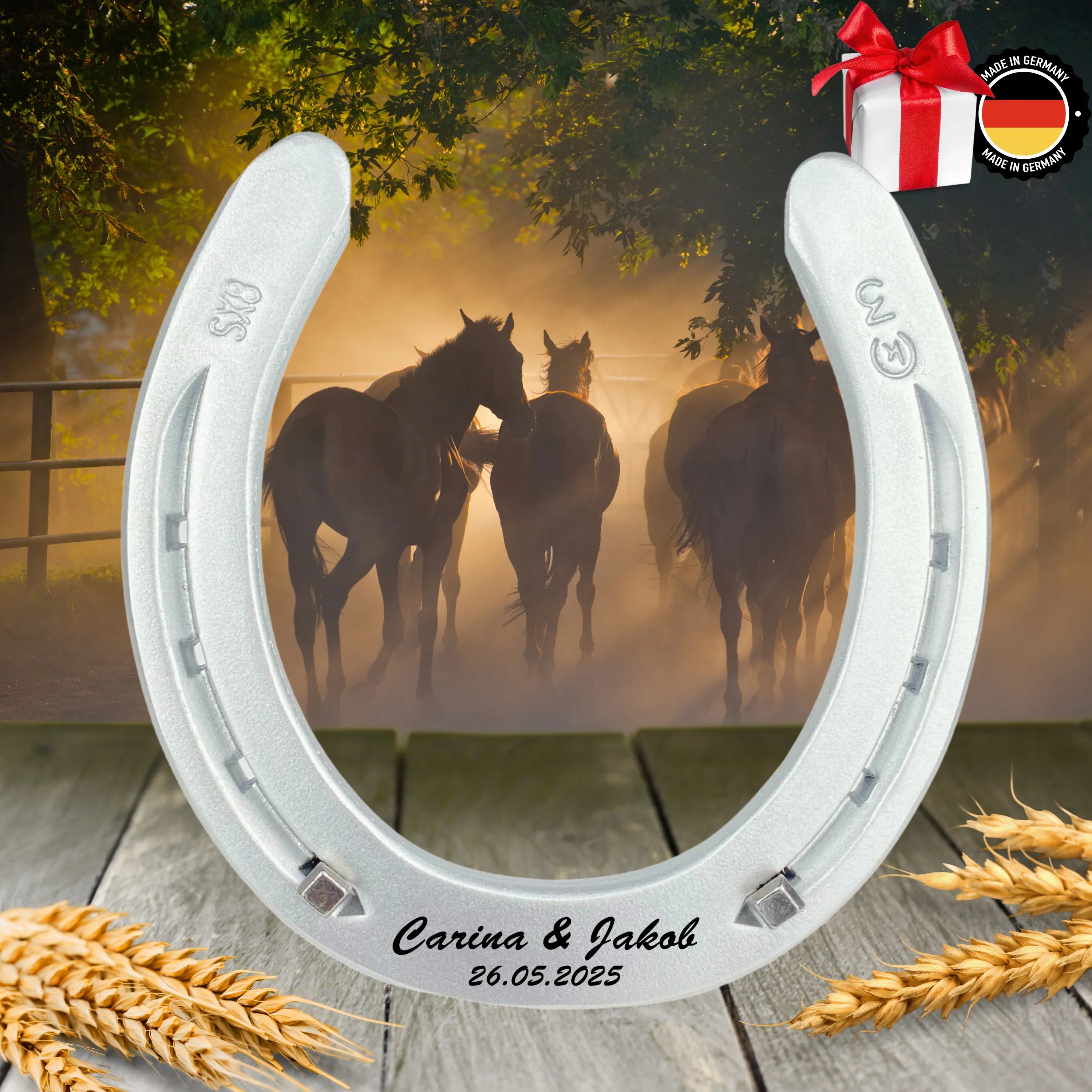 Ob zur Hochzeit, zum Einzug oder als liebevolle Aufmerksamkeit – unser graviertes Hufeisen ist mehr als nur ein Symbol. Es steht für Wertschätzung, Glück und bleibende Erinnerungen. Jetzt entdecken!