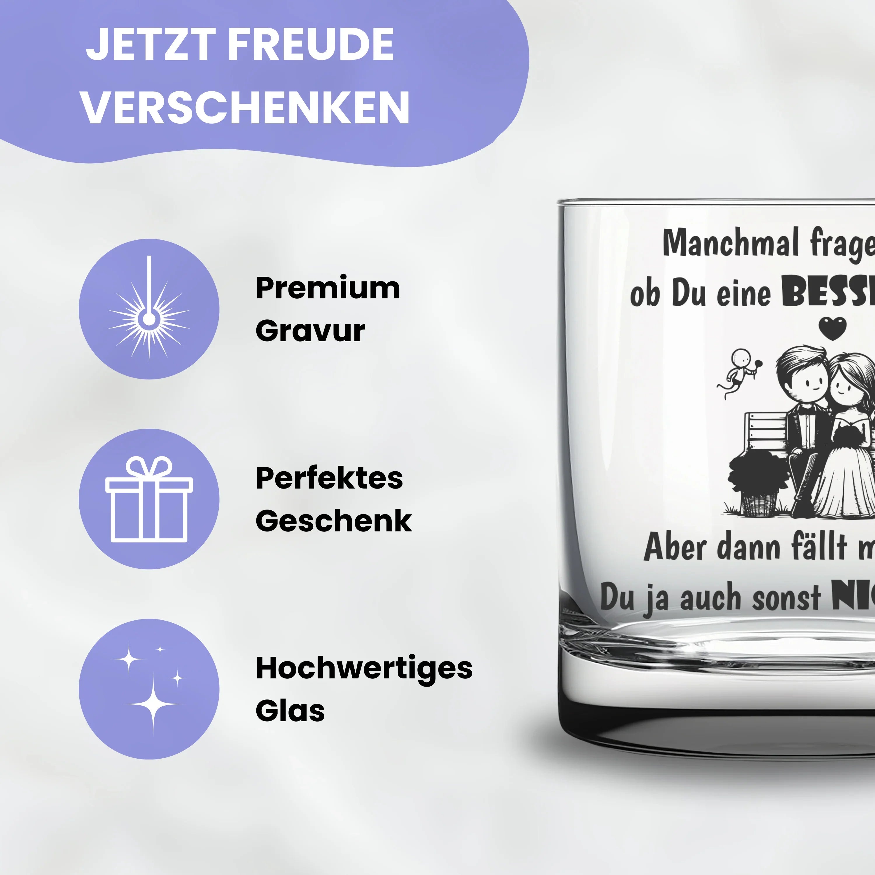 Ein Abschiedsgeschenk für einen Kollegen sollte persönlich, stilvoll und unvergesslich sein. Das gravierte Whiskyglas von Lasernauten verbindet hochwertige Qualität mit einer individuellen Gravur – eine bleibende Erinnerung an gemeinsame Zeiten im Team.