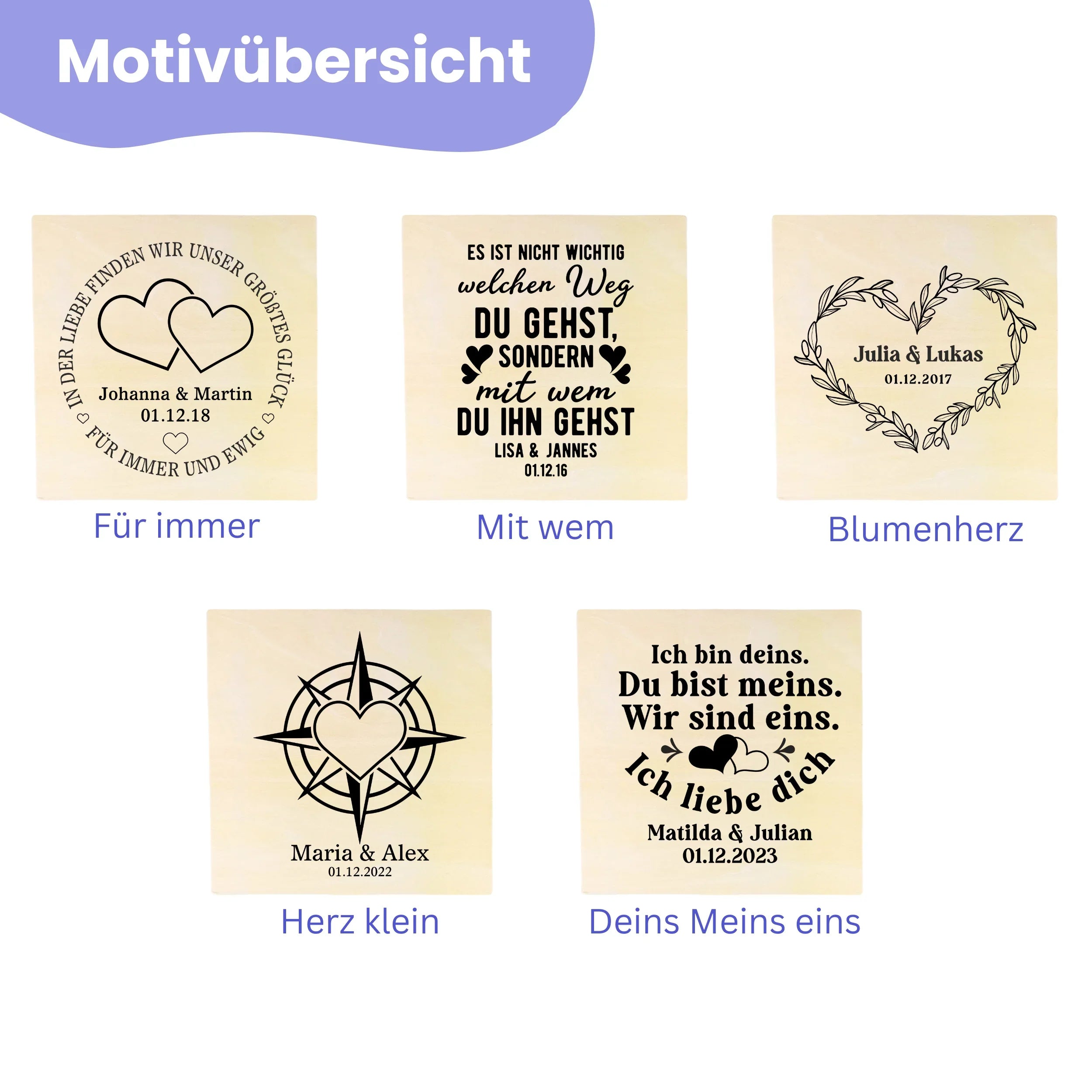 Ob zur Hochzeit, zum Abschluss oder einfach so – unsere personalisierten Produkte sagen mehr als tausend Worte.